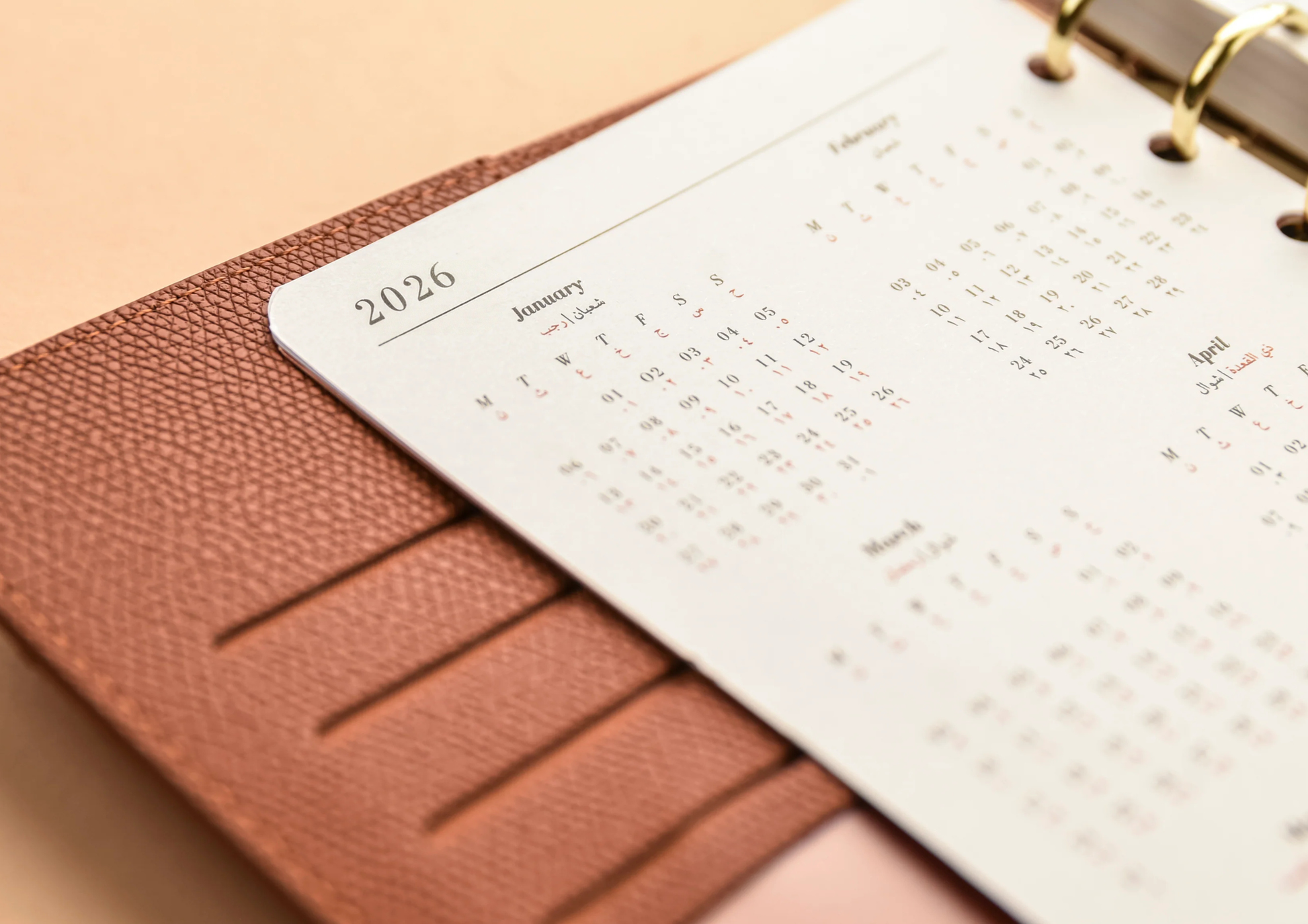 - مفكرة جلد فاخر قابلة للتعبئة بحجم A6 - ست جيوب داخلية وحامل للقلم - غلاف خارجي من أعمال الفنانة التشكيلية السعودية هبة اسماعيل - قلم أسود جاف - فاصل للصفحات - ٩٠صفحة مسطرة - صفحتان تقويم سنوي بالهجري والميلادي لعام ٢٠٢٦